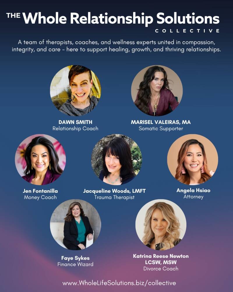 Life's most challenging transitions—divorce, relationship changes, financial upheaval, or major life shifts—rarely require just one type of support. That's why I'm proud to be a founding member of The Whole Relationship Solutions Collective, a carefully curated group of heart-centered practitioners who work together to support individuals and couples through every aspect of life's transitions.